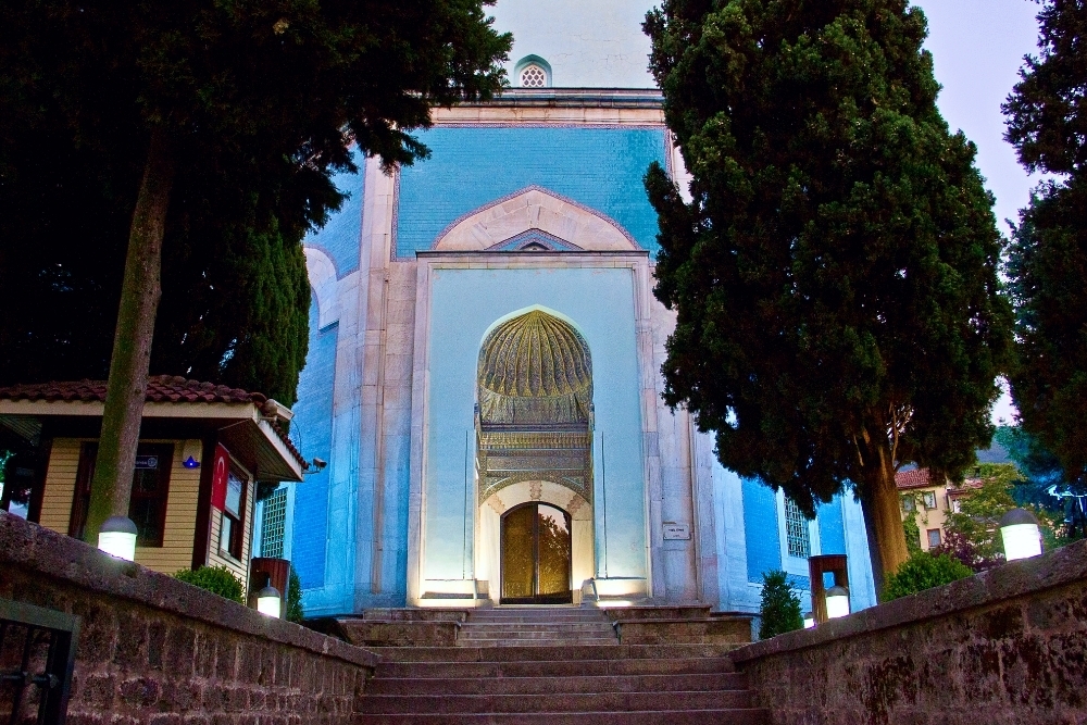 [Green Tomb] - Built-in 1421 to serve as a mausoleum for Sultan Mehmed I Celebi, the Green Tomb (Yesil Türbe) sits above the larger Green Mosque complex in Bursa, Turkey. The striking exterior of the tomb is decorated with blue-green tiles, most of which replaced the original tiles after an earthquake damaged the tomb in 1855.