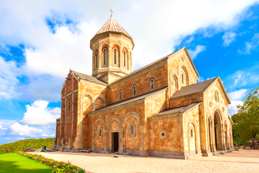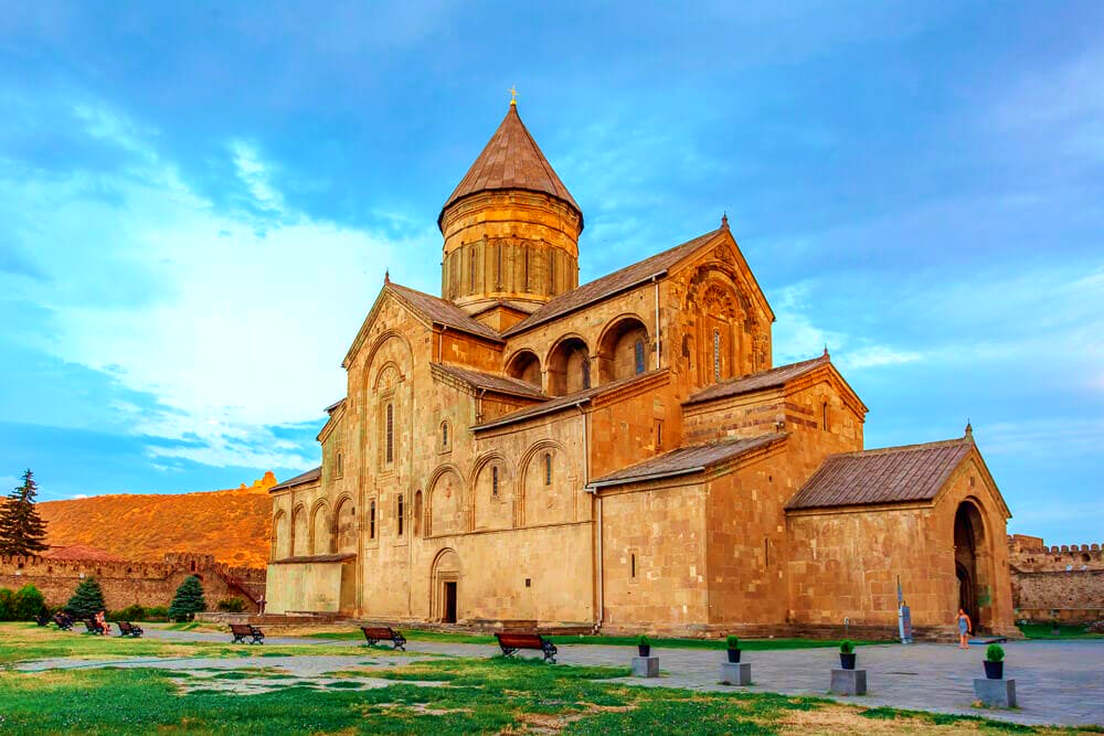 [Svetitskhoveli Cathedral] is an Orthodox Christian cathedral located in the historic town of Mtskheta, Georgia, to the northwest of the Georgian capital Tbilisi. A masterpiece of the Early and High Middle Ages, Svetitskhoveli is recognized by UNESCO as a World Heritage Site. You may scroll along the next door market for local souvenirs and snacks.