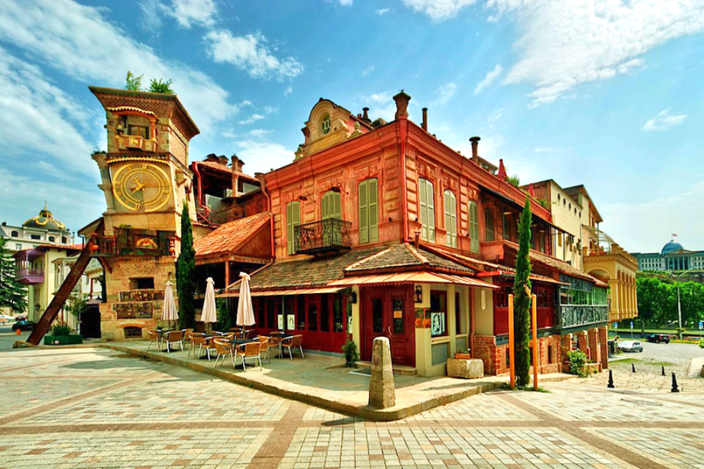 [Rezo Gabriadze] Famous puppet theatre with a clock tower.