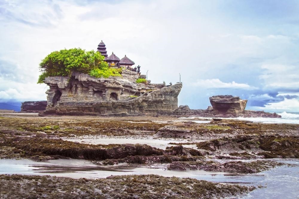 [Tanah Lot Temple] a spectacular temple built in the 17th century, on top of rock about 200 meters offshore.