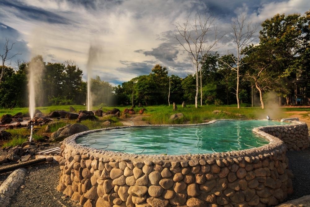 [Mae Kachan Hot Spring] is located in Chiang Rai province. You can boil an egg in minutes in the 80 C water of the Mae Kachan Hot Spring. The water from the main geyser is too hot for bathing, so instead there are separate pools where you can soak your feet in the naturally warm water and relax amid the gardens.