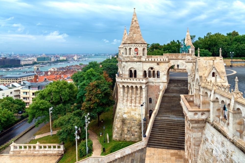 [Fisherman's Bastion] is one of the best-known monuments in Budapest, located near the Buda Castle, in the 1st district of Budapest. It is one of the most important tourist attractions due to the unique panorama of Budapest from the Neo-Romanesque lookout terraces. *Entrance is included*