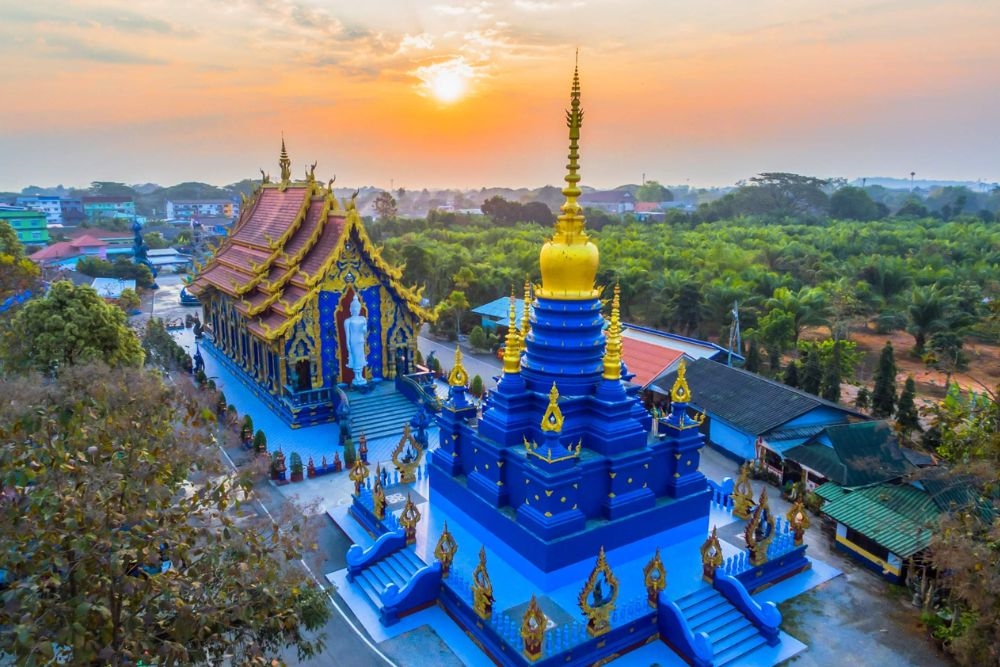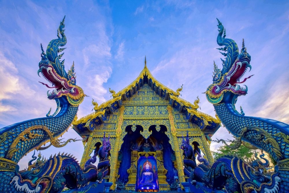[Blue Temple] The Monumental, modern Buddhist temple distinguished by its vivid blue coloring and elaborate carvings.