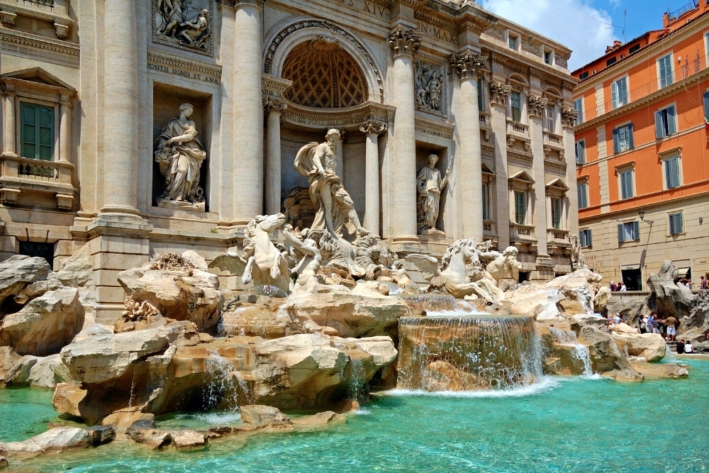 [Fontana di Trevi] is a fountain in the Trevi district in Rome, Italy, designed by Italian architect Nicola Salvi and completed by Giuseppe Pannini and several others. Standing 26.3 meters high and 49.15 meters wide, it is the largest Baroque fountain in the city and one of the most famous fountains in the world.