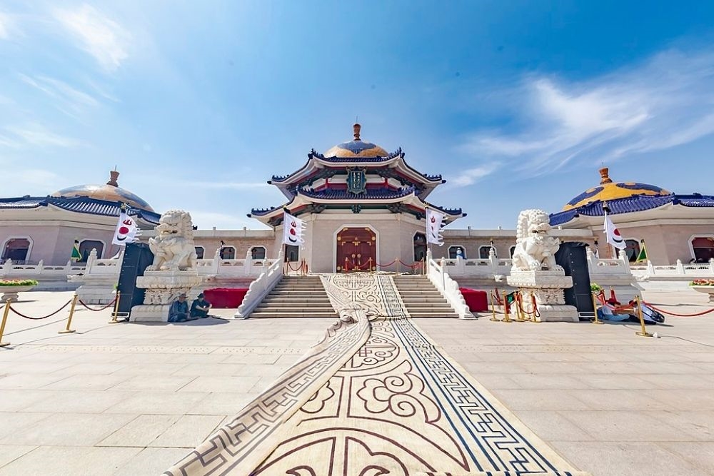 [Genghis Khan Mausoleum] It is located on Gandeli Grassland, Yijinhuoluo County, 70 kilometers away from Dongsheng District. The Mongolians will bury the corpse secretly, therefore, the real Genghis Khan Mausoleum is always a mystery. The current Genghis Khan Mausoleum is a cloak mound. After many relocations, it was founded in 1954 and moved from Ta'er Temple in Huangzhong County to Yijinhuoluo County, 185 kilometers north of Baotou City, the magnificent scenery is unique to the grassland. The Mausoleum of Genghis Khan has now become a major tourist attraction in Inner Mongolia.