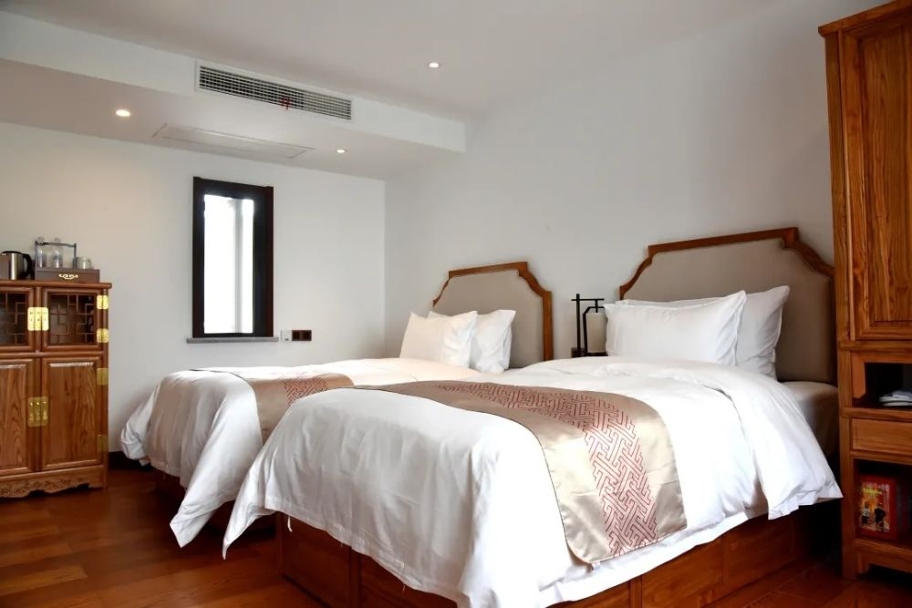 The hotel is invested by Huzhou Boyang Resort Hotel Co., Ltd. and managed by New Century Hotel Group. White walls and blue tiles, log furniture, 24 independent Chinese-style courtyards, and antique houses in the south of the Yangtze River. The strong Chinese-style architecture is consistent with the style of the ancient town.