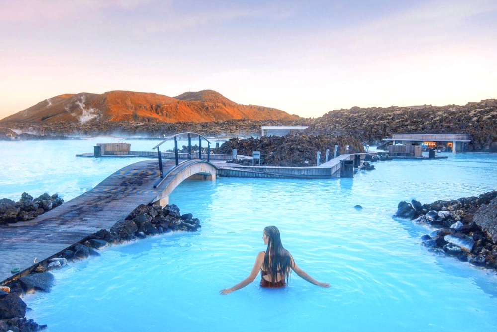 [Blue Lagoon] is a modern wonder of the world tucked away in a jet-black lava field. The geothermally heated waters of this famous spa are renowned for their skin healing properties. Wispy plumes of steam rise off its milky-blue waters as mountains tower on the horizon, giving it a supernatural feeling.
