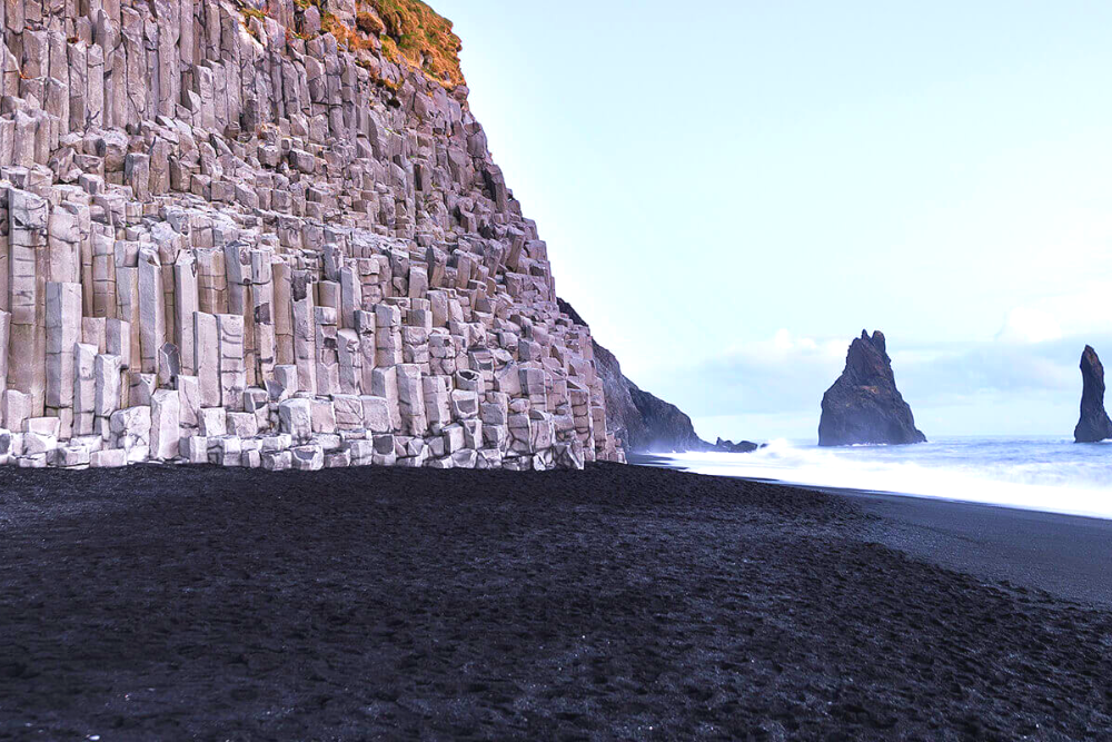 [Reynisfjara] is a world-famous black-sand found on the South Coast Of Island, just beside the small fishing village of Vik í Myrdal.