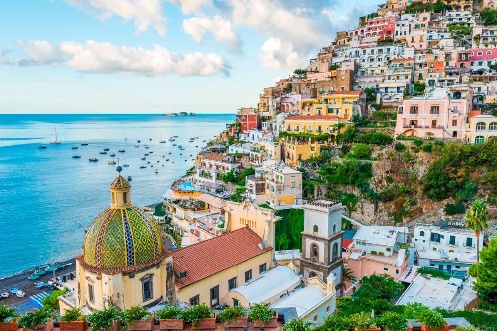 [Positano] sits in a splendid panoramic position on one of the most beautiful stretches of coastline. Its enchanting town centre of delightful pastel-coloured houses surrounds the parish church of Santa Maria Assunta; its streets are lined withquaint, colourful shops, and its numerous beaches are world-famous.