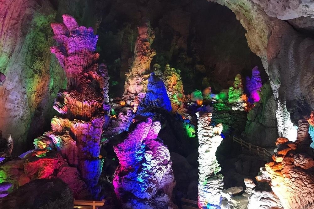 [Baimo Cave] is a typical karst cave, which contains all the characteristics of the cave: stalactites may hang on the top or rise from the ground, with various animal and human shapes. These rocks sparkle with fascinating brilliance under the light, such as diamonds and pearls.