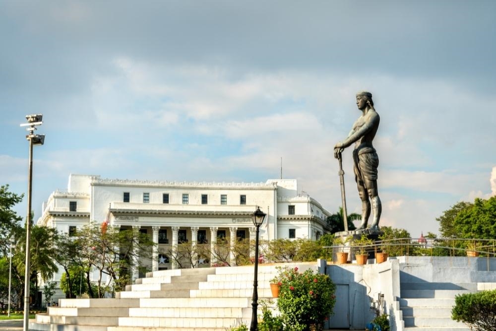 [Lapu Lapu Monument] a bronze statue that commemorates Lapu Lapu, a native leader who defeated Spanish soldiers led by Magellan in the 1521 Battle of Mactan.
