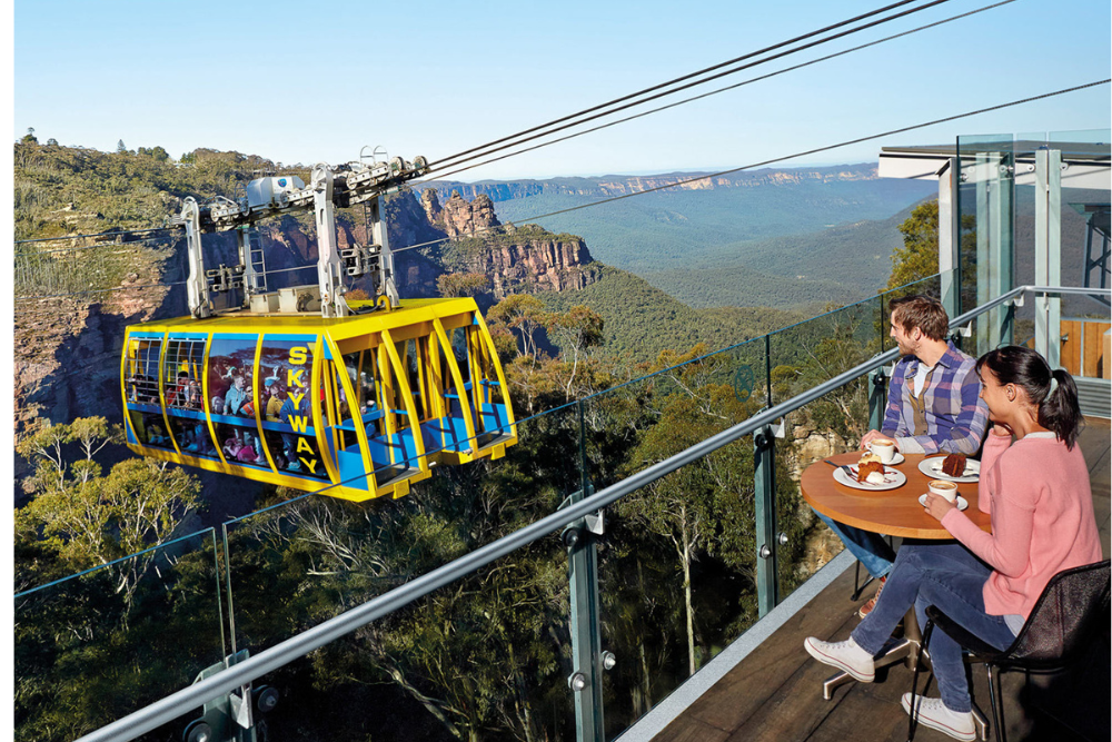 ** Scenic Skyway - Glide between cliff tops with panoramic views of World Heritage landscapes on the Scenic Skyway. This 720 metre journey provides the best views of Katoomba Falls, the Three Sisters, Mt Solitary and Jamison Valley.