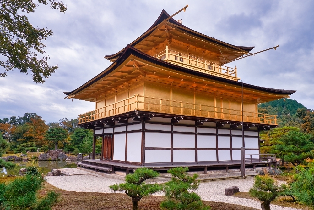 [Kinkakuji Golden Pavilion] is a Zen Buddhist temple in Kyoto, Japan. It is one of the most popular buildings in Kyoto, attracting many visitors annually.