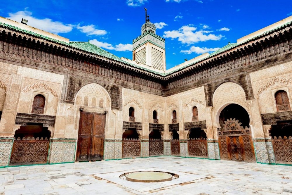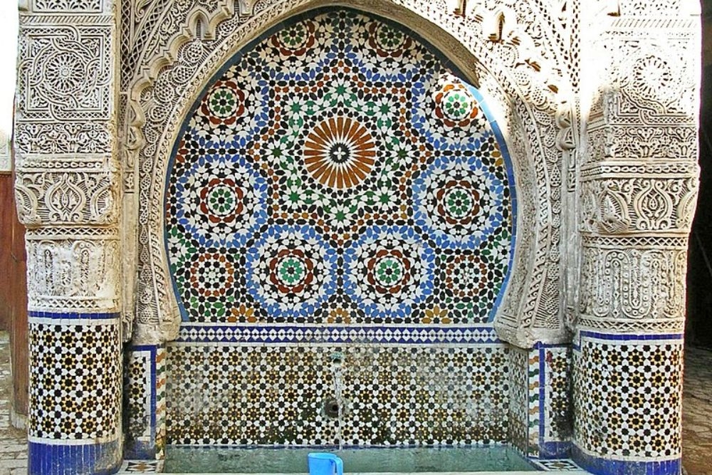 Depart on a full-day tour for the city sightseeing tour of Fez, the religious capital of Morocco, visiting the medieval Medina with its Attarine and Bou Anania Medersas, the Nejjarine fountain, the Moulay Idriss mausoleum, and the Karaouine mosque..