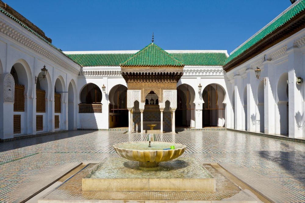 [Karaouine Mosque] also known as Al-Qarawiyyin Mosque, the largest mosque in North Africa. It was founded in 859 by a family that was part of a group of migrants who had moved from Kairouan in Tunisia to Fes in Morocco in the 9th century.
