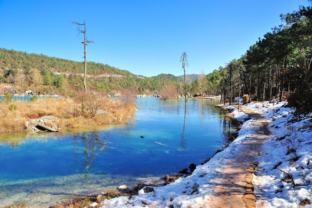 [Blue Moon Valley] Located at the foot of the Yulong Snow Mountain in Lijiang, it is formed by the white water river from the melting water of the Yulong Snow Mountain. The pool water is crystal clear and the blue is fantastic, which shocks the eye. *Include Battery Car*