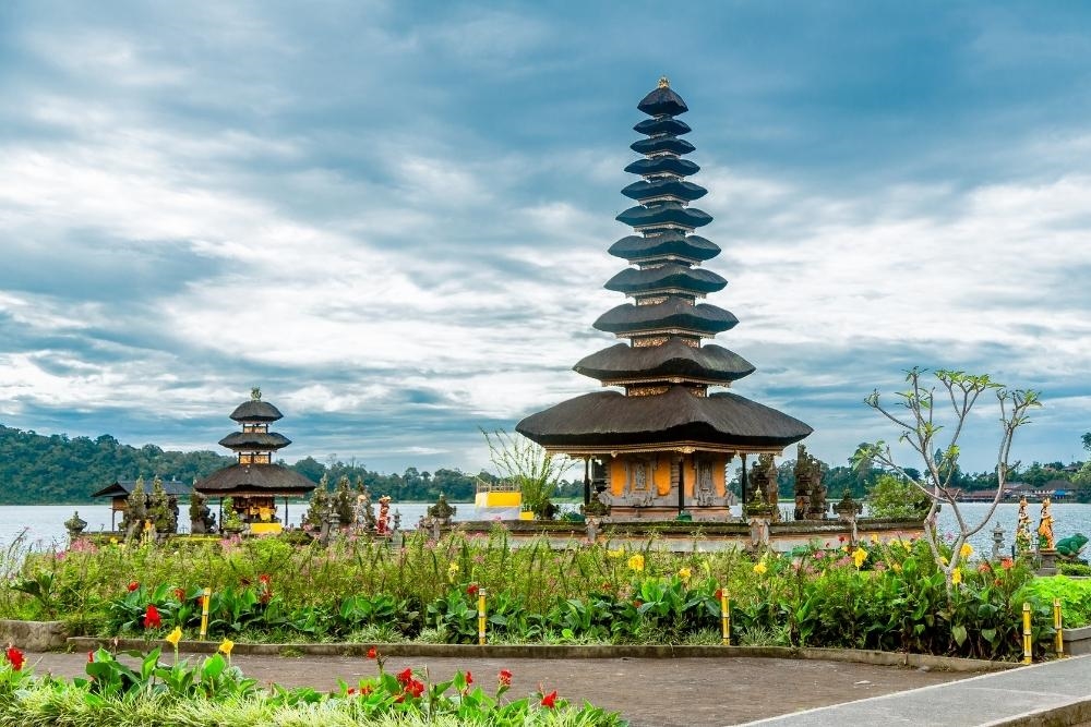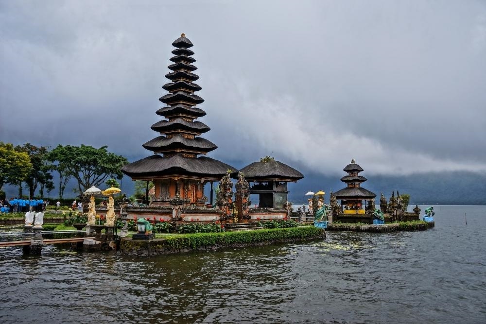 [Bedugul] a mountain lake resort area in Bali, Indonesia, located in the centre-north region of the island near Lake Bratan.