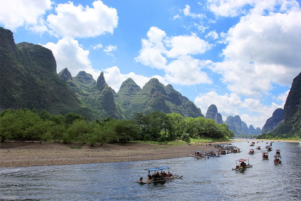 [Li River] is an article in the Chinese textbook of elementary school that "Guilin's landscape is the best in the world" refers to the tour of Lijiang. The peaks on both sides of the Li River are stalwart and tall, with various shapes, which are the essence of Guilin's wind and light. The most representative landscape of the whole journey is the Jiuma Painting Mountain and the reflection of the yellow cloth. The back of the new version of RMB 20 refers to the landscape of the reflection of the yellow cloth.(By Bamboo Rafting)