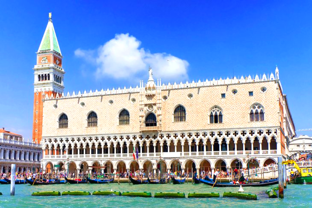 [Doge's Palace] is a palace built in Venetian Gothic style, and one of the main landmarks of the city of Venice in northern Italy. The palace was the residence of the Doge of Venice, the supreme authority of the former Republic.