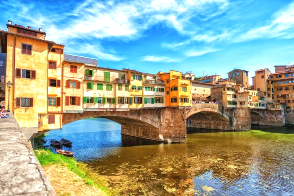 [Ponte Vecchio] the first segmental arch bridge built in the West, which crosses over the Arno River at Florence and is an outstanding engineering achievement of Europe's Middle Ages.