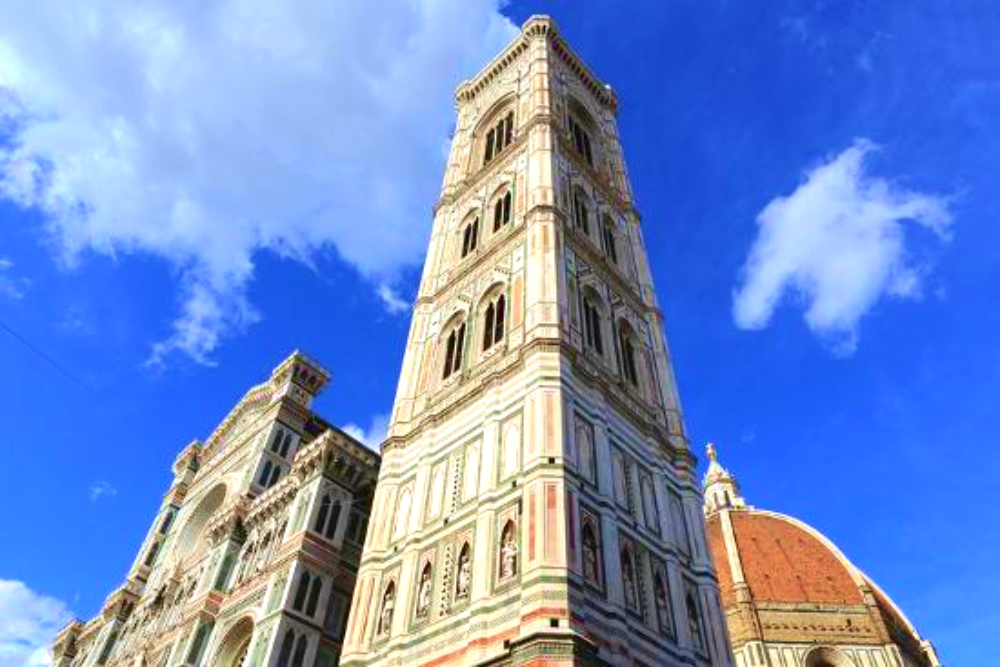 [Giotto Bell Tower] located in the heart of the historic center and considered the most beautiful bell tower in Italy. Giotto Bell Tower is 84.70 meters high and about 15 meters wide.