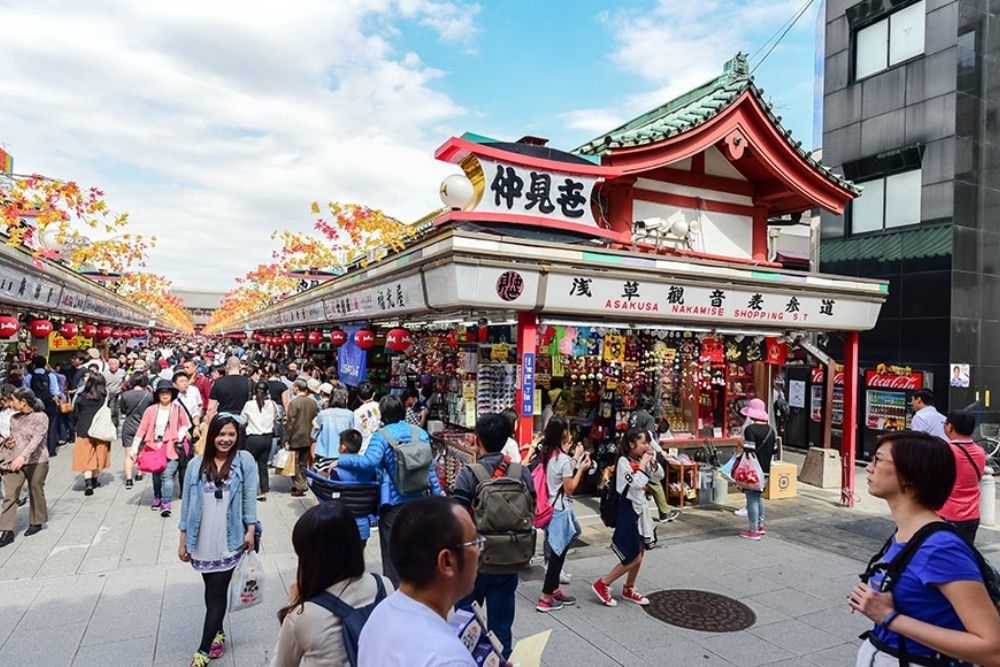 [Nakamise Shopping Arcade] Bustling shopping street connecting the main gate of Sensoji Temple & the main hall.