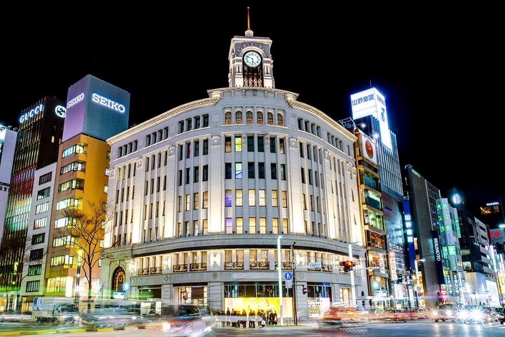 [Ginza Area] One of the city’s top shopping districts, Ginza is packed with upmarket boutiques and ritzy cocktail and sushi bars. Fine jewelry is sold in the 1930s Wako Honkan department store, while ultramodern Ginza Place specializes in high-tech electronics. On weekends, the main drag Chuo Dori becomes a stylish pedestrian promenade. Traditional Japanese dance and drama are staged at the landmark Kabuki-za theater.