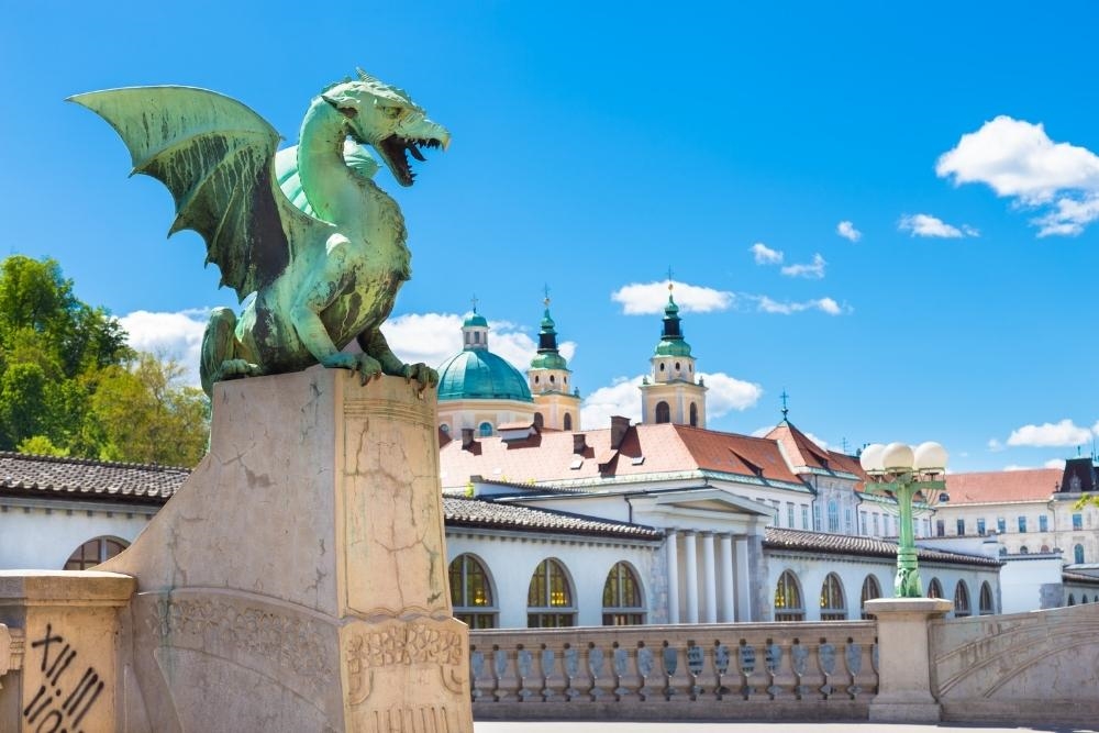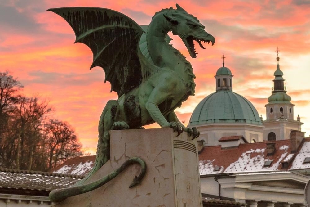 Dragon Bridge (all outside): The Dragon Bridge is a road bridge located in Ljubljana, the capital of Slovenia. It crosses the Ljubljanica River. between Kopitar Street and Ressel Street, to the north of the Ljubljana Central Market at Vodnik Square.
